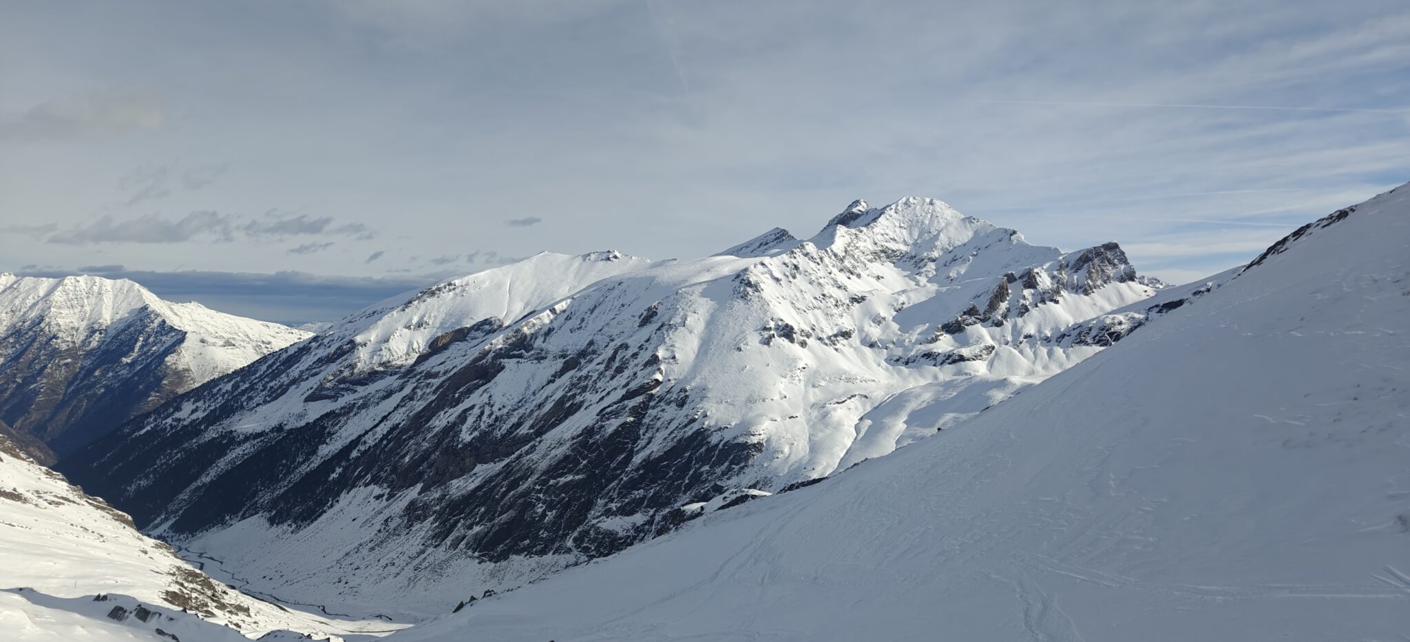 Esta zona, a moderada altitud, permite empezar las actividades de esquí de montaña en cuanto caen las primeras nevadas. Como la nieve no es abundante, decidimos hacer la ascensión al pico de Aiguillette, fronterizo y con estupendas vistas.